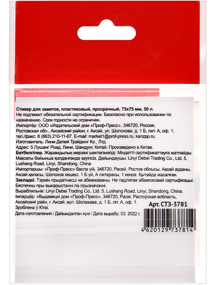 | Блок бумаги для заметок пластиковый самоклеящийся (с клеевым краем) 75* 75 50 листов ИДП прозрачный (п/упаковка с европодвесом)  Яркие оригинальные и прозрачные закладки помогут акцентировать внимание на важных и необходимых страницах любимой книги, модного журнала и т.д. Изготовленные из пластика с клеевым слоем, закладки не оставляют следов и могут многократно переклеиваться, не повреждая поверхность бумаги. На закладках можно делать надписи ручкой или карандашом. В одной упаковке 50 листов. Размер: 75х75 мм. |