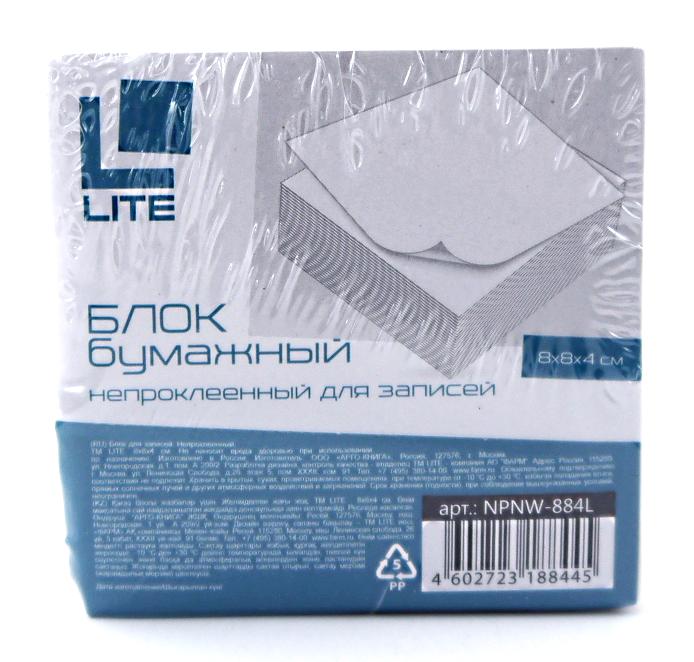 | Кубарик (блок бумаги) для записи 80*80*40 Блок для заметок LITE Eco (п/упаковка) Р55  Блок для записи белый изготовлен из типографской бумаги плотностью 55-65 г/м2 и белизной 70%. Листки в блоке не проклеены по корешку, что позволяет легко и быстро взять нужное количество бумаги. Идеально подходит для использования с подставкой. |