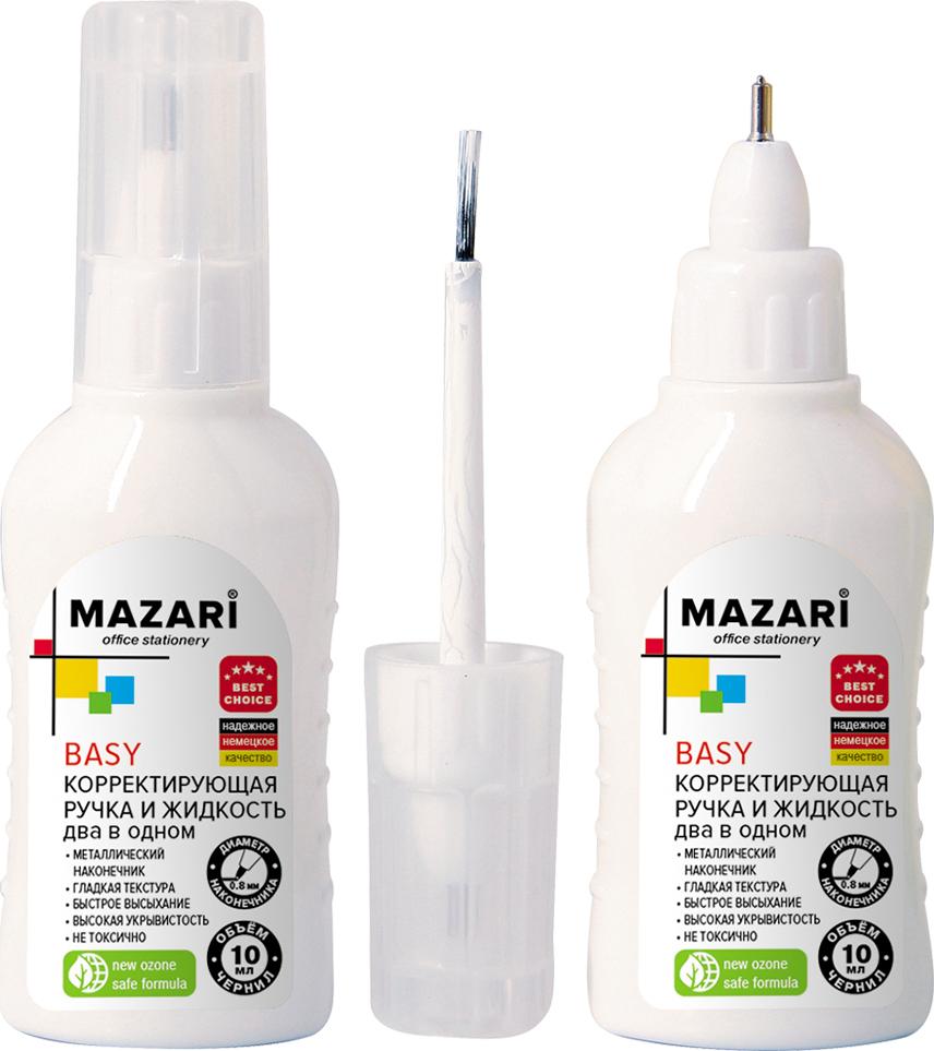 | Корректирующая жидкость 10мл MAZARI Basy (спиртовая основа) 2в1 (металлический наконечник) +кисточка  Корректирующая жидкость, 10 мл. 2 в 1: с кисточкой и металлическим наконечником. Диаметр металлического наконечника 0,8 мм. Состав: металл, пластик, корректирующие чернила. |