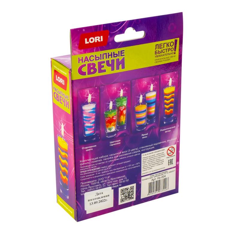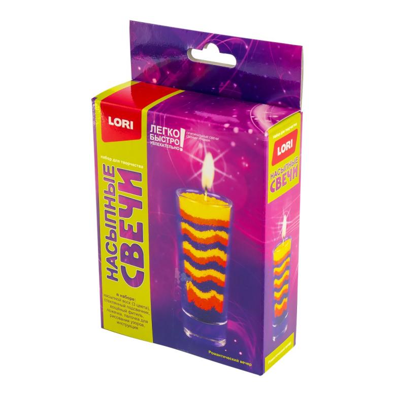 | Набор для творчества (Свечи) LORI насыпные Романтический вечер (картонная упаковка с европодвесом)Марка/Производитель: LORI  Набор по созданию насыпной свечи. Процесс создания свечи прост, но очень увлекателен. С помощью набора ребенок сможет создать красивую и уникальную свечу. Все, что нужно, это следовать инструкции и проявлять фантазию и воображение. Свеча будет отличным украшением для дома, а также полезна в быту, ведь в комплектацию входит фитиль, который позволит свече гореть. Комплектация: Цветной насыпной воск (3 цвета), вощёный фитиль, стеклянный подсвечник, ложечка, палочка для рисования узоров, инструкция. |
