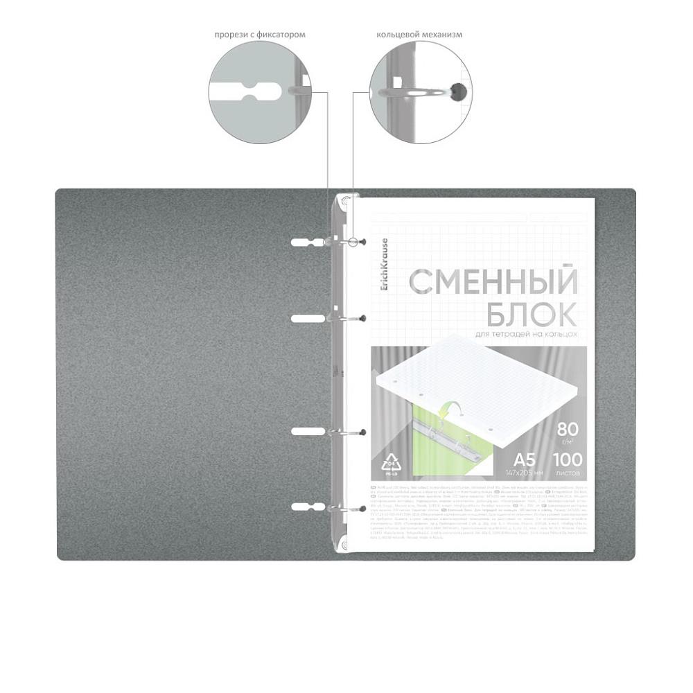 Запасной блок для тетрадей со сменным блоком на кольцах А5 80 листов (АППЛИКА) (клетка) офсет белый (п/упаковка)  Блок сменный. А5. 80 листов. Отверстия под кольца. Линовка - клетка |