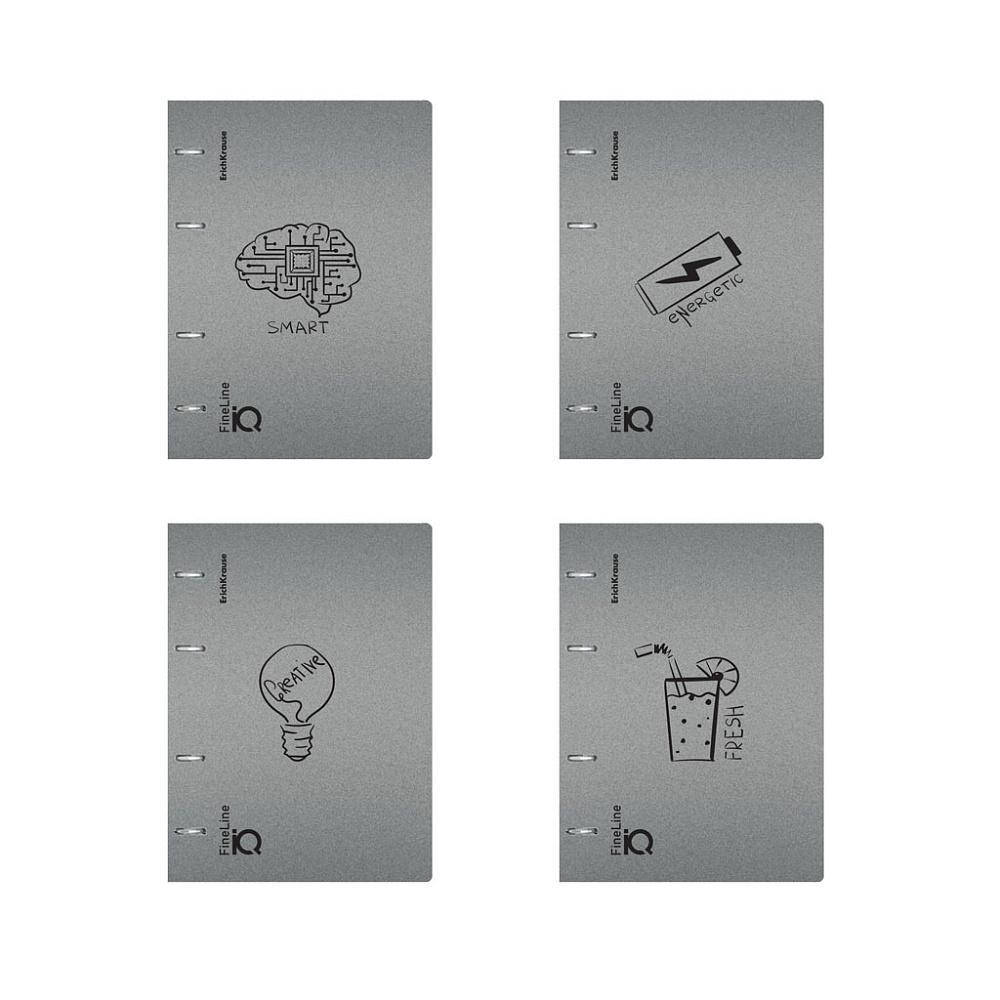 | | Тетрадь на кольцах А5 со сменным блоком 100 листов (клетка) ErichKrause (пластиковая обложка) IQ FineLine LifeStvle серебр Ассорти  Тетрадь общая формата А5 (147x205 мм). Обложка из высококачественного износостойкого матового пластика с фактурой «песок». В блоке 100 листов в клетку в рамке. Бумага офсетная плотностью 80 г/м2. Цвет линовки — синий. Скругленные уголки обложки. Тип скрепления — кольца. Прорези под кольца оснащены фиксаторами, которые предотвращают раскрытие тетради. |