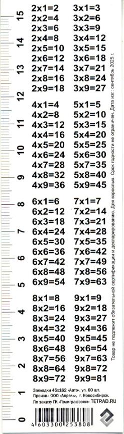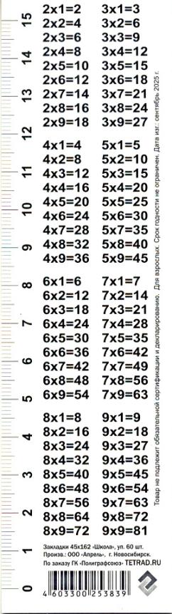 | | Закладка - линейка для книг картонная ГРУП лак (с таблицей умножения) Школа Ассорти  Закладка, предназначенная для учебников, школьных пособий, книг, тетрадей и т.д. - одни из самых удобных аксессуаров нынешнего времени, сочетающие в себе как практическую, так и декоративную функции. |