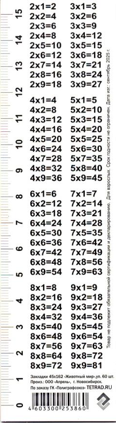 | Закладка - линейка для книг картонная ГРУП лак (с таблицей умножения) Животный мир Ассорти  Закладка, предназначенная для учебников, школьных пособий, книг, тетрадей и т.д. - одни из самых удобных аксессуаров нынешнего времени, сочетающие в себе как практическую, так и декоративную функции. |