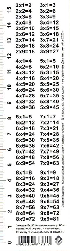 | | Закладка - линейка для книг картонная ГРУП лак (с таблицей умножения) Милые зверюшки Ассорти  Закладка, предназначенная для учебников, школьных пособий, книг, тетрадей и т.д. - одни из самых удобных аксессуаров нынешнего времени, сочетающие в себе как практическую, так и декоративную функции. |