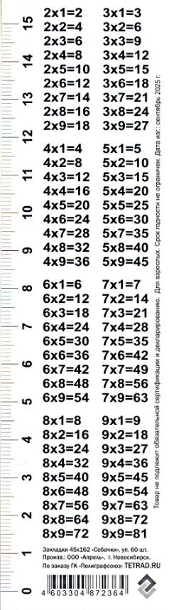 | Закладка - линейка для книг картонная ГРУП лак (с таблицей умножения) Собачки Ассорти  Закладка, предназначенная для учебников, школьных пособий, книг, тетрадей и т.д. - одни из самых удобных аксессуаров нынешнего времени, сочетающие в себе как практическую, так и декоративную функции. |