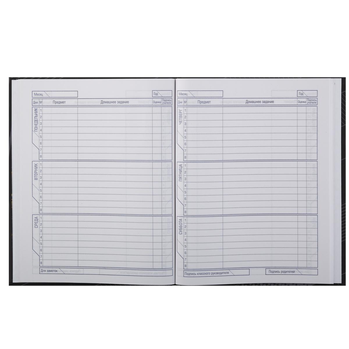 | | Школьный дневник с универсальным блоком для учеников 1-11 классов (картонная обложка) (АППЛИКА) ГимнРФ (на гребне) Черный  Дневник универсальный в мягком переплете, 40 листов. Внутренний блок - офсет, плотность 65 гр/м2, на гребне. Страницы из белой бумаги с синей печатью. Блок универсальный, включает 36 учебных недель. Белый форзац. Обложка - мелованный картон. Крепление - металическая евроспираль. |