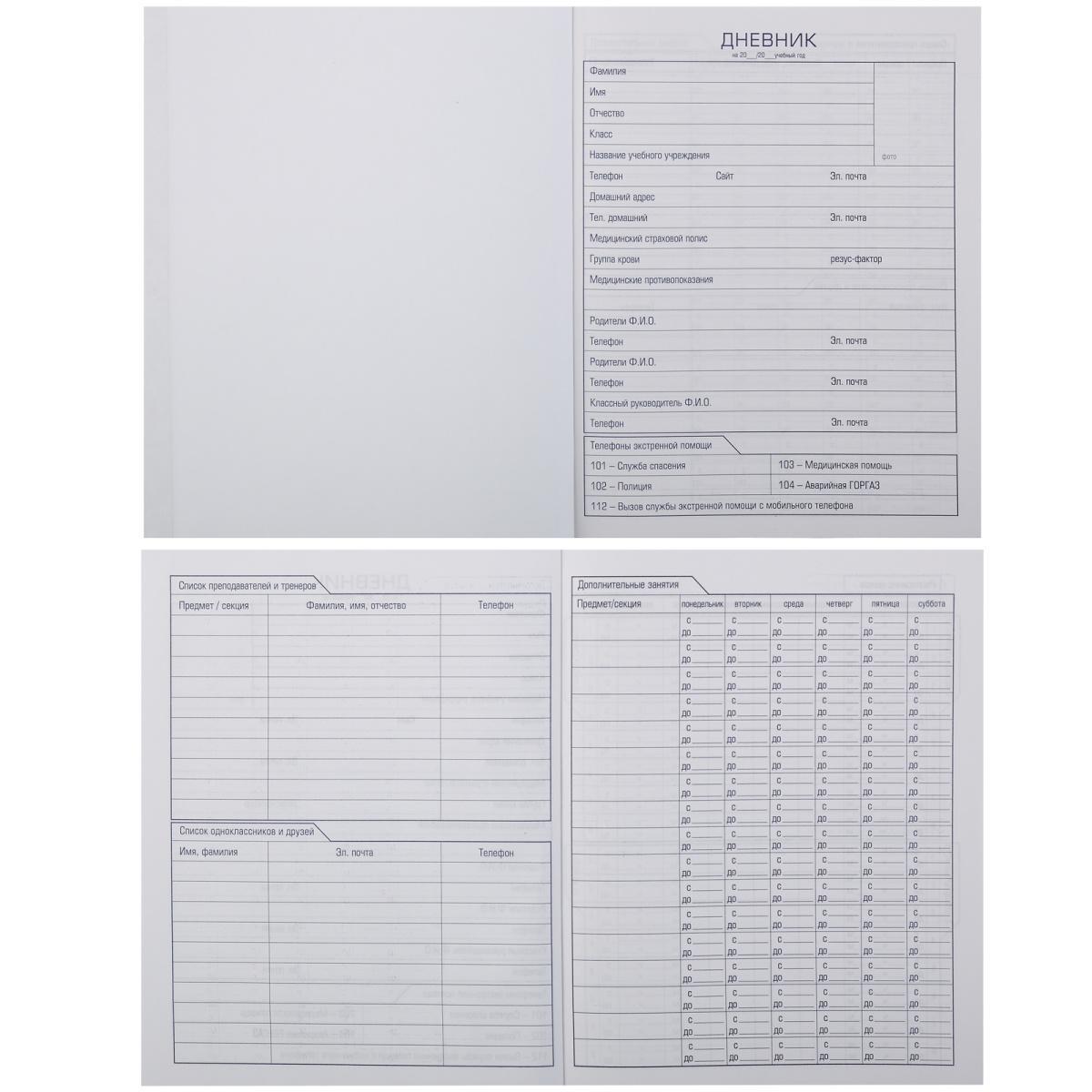 Школьный дневник с универсальным блоком для учеников 1-11 классов мягкий (АППЛИКА) Белый  Дневник универсальный, 40 листов. Внутренний блок - офсет, плотность 65 гр/м2, размер 165 х 210 мм. Страницы из белой бумаги с синей печатью. Блок универсальный, включает 36 учебных недель. Крепление - скоба. Обложка - мелованный картон, размер 165 х 205 мм. Дневник соответствует требованиям ГОСТа. |