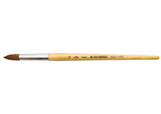 | Кисть пони N- 5 художественная круглая (АППЛИКА)  Художественная кисть изготовлены из волоса пони. Волос пони несколько толще, чем у белки, расстояние между волосками больше, поэтому воду такая кисточка набирает меньше, чем из белки или колонка. Не слишком упруги. Кисть круглой формы идеальна для начинающих художников, поэтому её часто используют в детских образовательных учреждениях. |