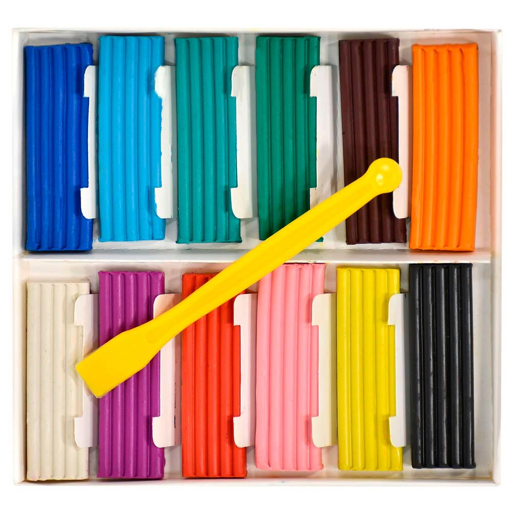 | Пластилин 12 цветов 240гр ЗХК Я-ХУДОЖНИК! со стеком (картонная упаковка)  Набор пластилина детского классического со стеком, 12 цветов. Предназначен для лепки и моделирования. Пластилин не прилипает к рукам, не имеет запаха, обладает яркими сочными цветами, которые легко смешиваются друг с другом. Рекомендуется для занятий на уроках труда и изобразительного искусства. Перед лепкой смочить руки водой, пластилин размять. После занятий лепкой руки протереть тканью или бумагой, затем вымыть их теплой водой с мылом. Состав набора: белый, жёлтый, оранжевый, красный, розовый, сиреневый, фиолетовый, голубой, синий, зелёный, коричневый, чёрный. Состав: церезин, парафин, органические и неорганические пигменты. |
