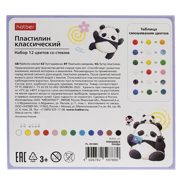 | Пластилин 12 цветов 180гр (ХАТБЕР) Плюшевые панды со стеком (картонная упаковка)  Пластилин создан для решения широкого круга творческих задач и для развития мелкой моторики. Пластилин отлично сохраняет свою форму и не застывает на воздухе, а также не прилипает к рукам и не пачкает одежду. Цветовая палитра содержит цвета, которые отлично смешиваются между собой, создавая новые оттенки. Пластилином можно не только лепить, но и рисовать по бумаге и картон. Предназначен для широкого круга пользователей самого разного возраста. |