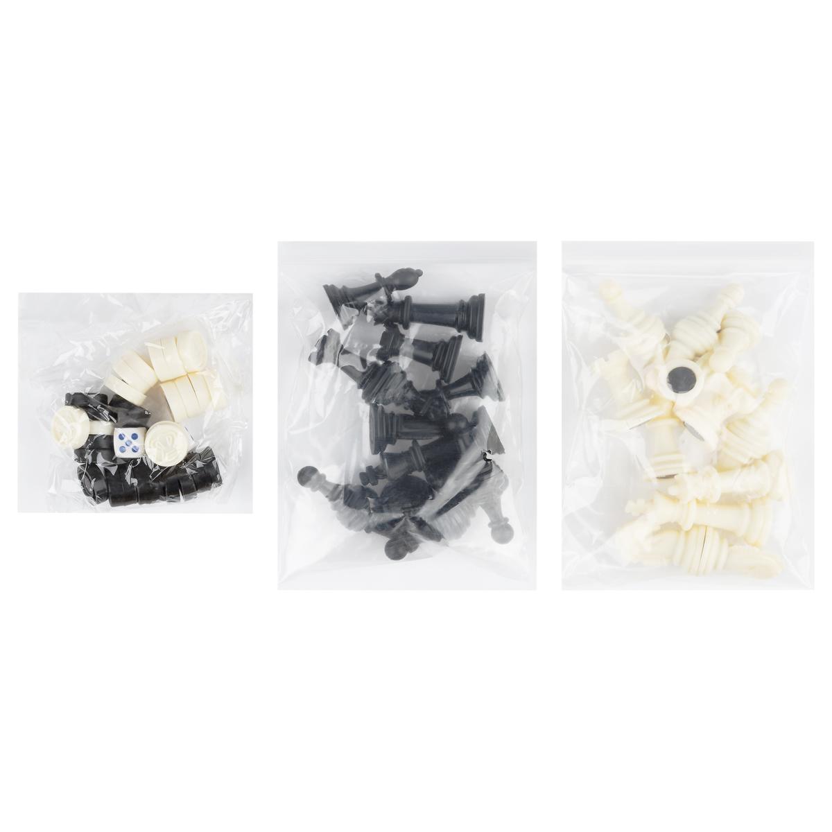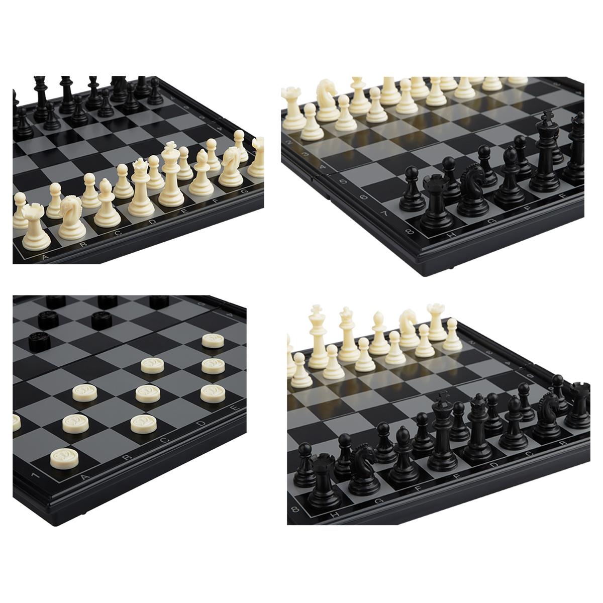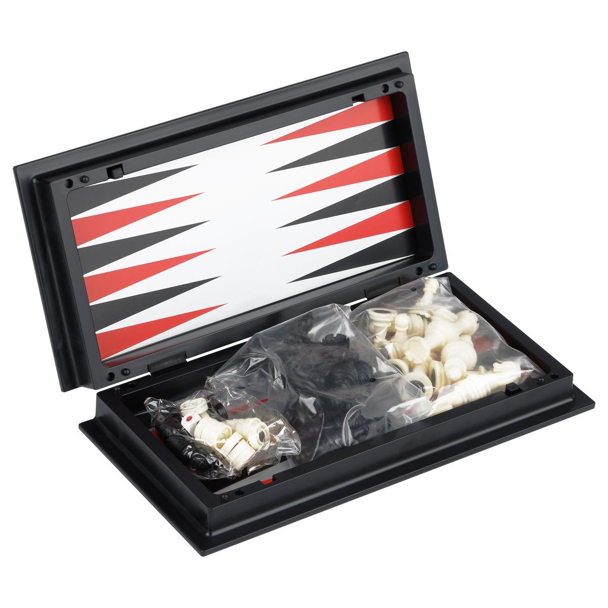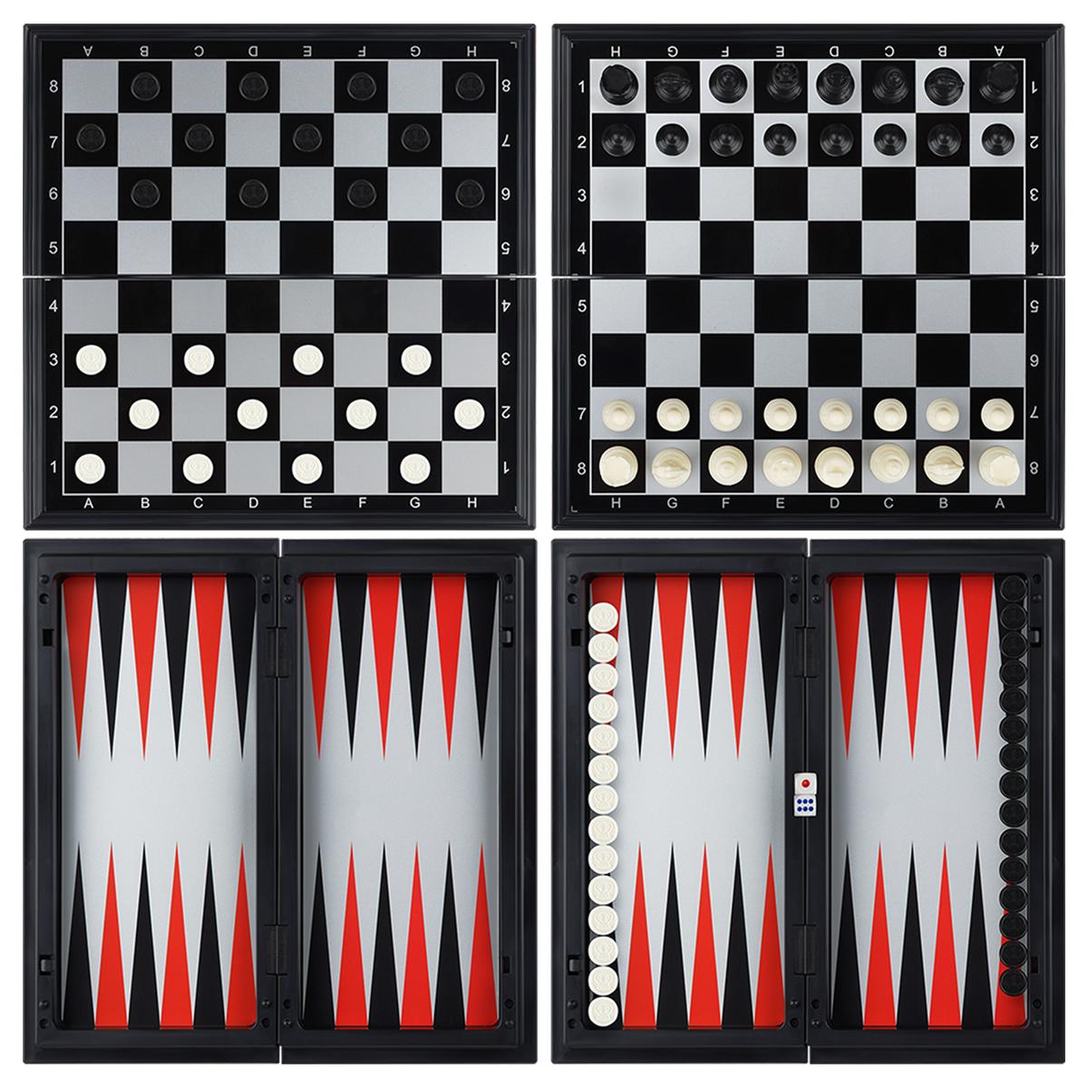| | Игра настольная Шахматы +шашки+нарды 3 в 1 ТРИ СОВЫ пластиковые магнит 24х24см (картонная упаковка)  «Нарды, шашки, шахматы» бренда «ТРИ СОВЫ» – набор увлекательных и развивающих игр для всей семьи. Под одной крышкой собраны популярные во всем мире шахматы, шашки и нарды. Магнитные фигуры и шашки не потеряются, их удобно распределять во время игры по полю. Шахматы развивают аналитический ум, помогают стратегически мыслить, а шашки учат ориентироваться в созданной ситуации и быстро находить решение. Нарды – это игра, требующая от участников стратегического мышления и умения вести комбинационную борьбу. Набор игр представлен в уменьшенном виде, что удобно взять её с собой в дорогу. Размер игрового поля 24*24 см. • Материал фигур: пластик; • Материал доски: металл; • Тип доски: складная с внутренним пространством. |