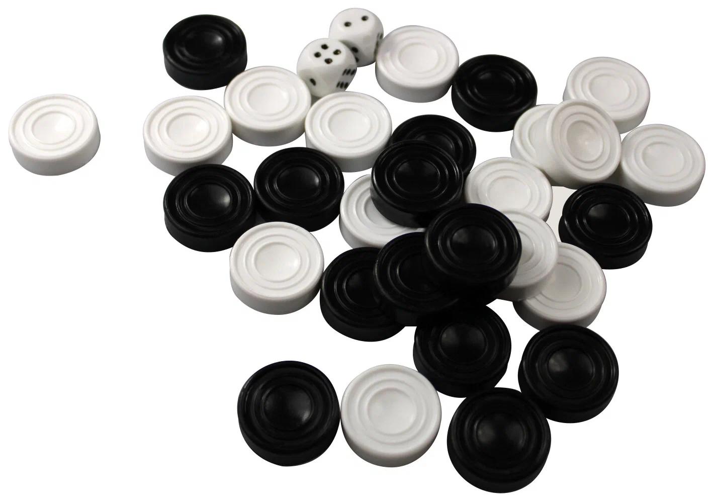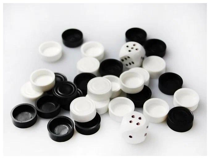 - шашки из пластмассы (белого и чёрного цвета) – 40 шт. (диаметр – 2,8 см, высота – 0,8 см)