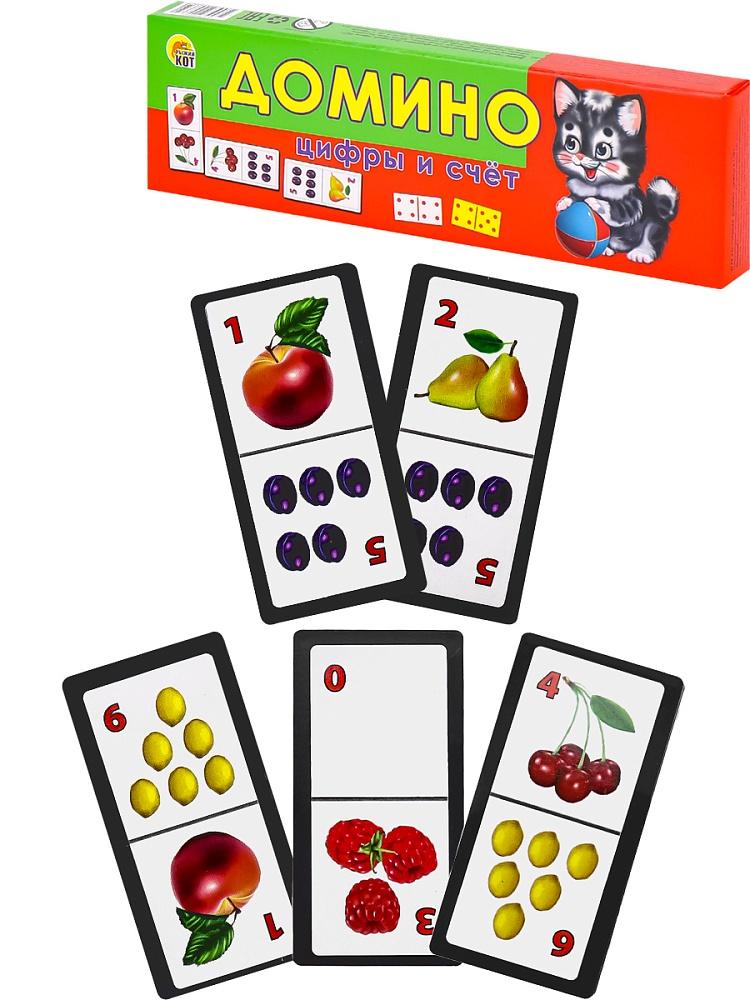 | Игра настольная развивающая Домино детское пласт (РЫЖИЙ КОТ) Цифры и счет (картонная упаковка)  Популярная игра, созданная специально для малышей с использованием ярких и красочных картинок. Способствует развитию памяти, внимания, мелкой моторики рук. Предназначено для 2-4 игроков от 3-х лет. |