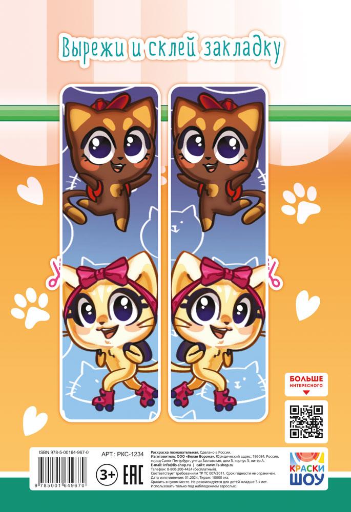 | | Раскраска А5 (картонная обложка) (ФОНТАНКА) РКС-1234 Кошки ( 16 страниц)  С ИГРОЙ на обложке и внутри. Цветные иллюстрации, размер в сложенном виде 162х234 мм. Обложка: картон 170 г/м, УФ лак. Внутренний блок: 16 страниц, офсетная бумага 80 г/м. |