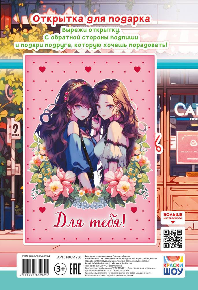 | Раскраска А5 (картонная обложка) (ФОНТАНКА) РКС-1236 Аниме Подружки ( 16 страниц)  С ИГРОЙ на обложке и внутри. Цветные иллюстрации, размер в сложенном виде 162х234 мм. Обложка: картон 170 г/м, УФ лак. Внутренний блок: 16 страниц, офсетная бумага 80 г/м. |