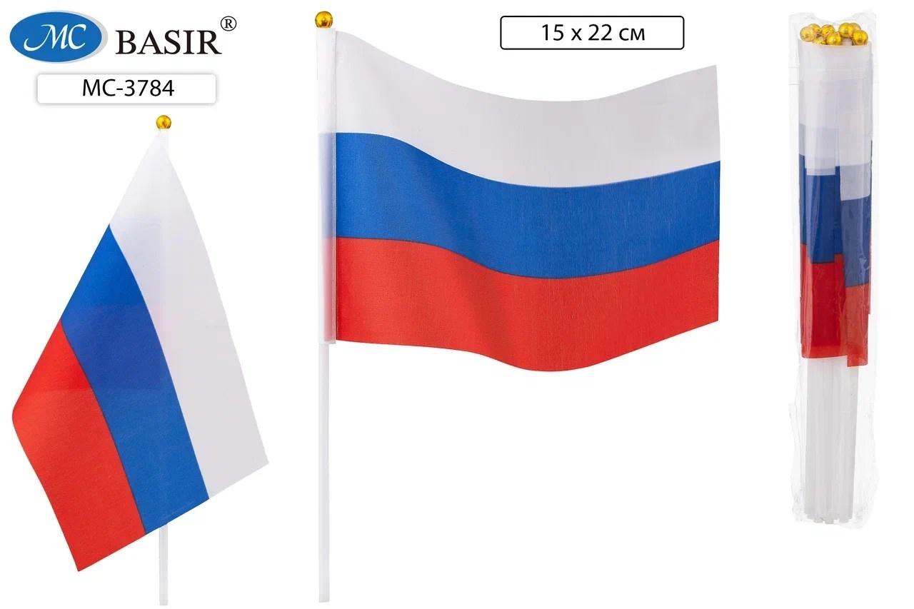 СИМВОЛИКА РФ Флаг России 15*22см BASIR ручка шелк триколорМарка/Производитель: BASIR  Флаг России "Триколор": на пластиковой трубочке, материал-искусственный шёлк, размер-15*22 см. Праздничный флаг подходит для демонстраций и митингов, оформления офисов, конференц-залов, кабинетов.