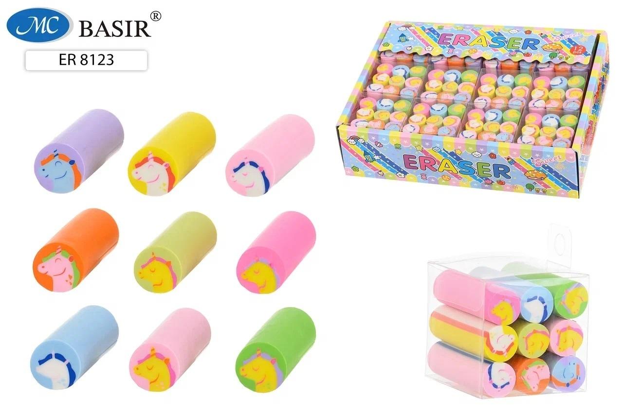 | | Ластик BASIR ER-8123 Единорог 50*10*10мм АссортиМарка/Производитель: BASIR  Ластик: "ЕДИНОРОГ"; мягкий, цветной, цилиндрической формы с рисунком /ассорти/, в пластиковой упаковке по 9 штук, размер 4,8*1,4 см. |