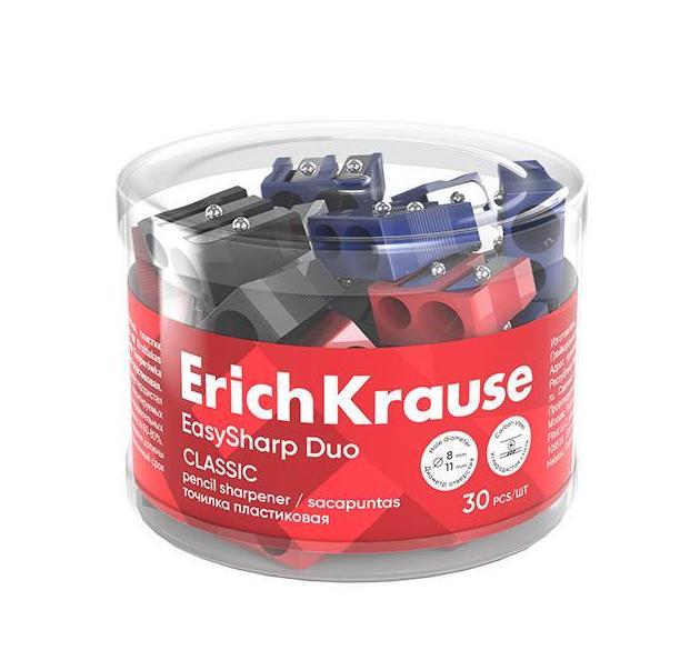 Точилка (пластиковая) ErichKrause 60010 EasySharp Duo Classic двойная Ассорти  Пластиковая точилка с эргономичной зоной захвата. Два отверстия для заточки стандартных чернографитных и цветных карандашей диаметра 8 мм и 11 мм. Никелированное лезвие из углеродистой стали. |