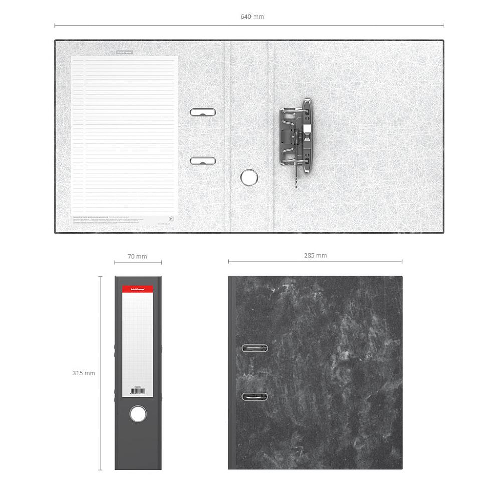 | Папка Регистратор с арочным механизмом 70мм ErichKrause Эконом разборный серый 33862  Папка - регистратор формата А4 снабжена стальным арочным механизмом с никелевым покрытием. Изготовлена из картона толщиной 1,75 мм, покрытого бумагой «под мрамор». На корешке шириной 70 мм изображена этикетка для маркировки. Для удобства использования на корешке имеется металлическое кольцо для захвата. Металлические фиксаторы удерживают папку в закрытом виде даже при максимальном наполнении. Вместительность 450 листов бумаги плотности 80 г/м2. На форзаце есть шаблон для оглавления. Папка предназначена для сдачи отчетной документации, последующего архивирования документов и хранения их в папке. |