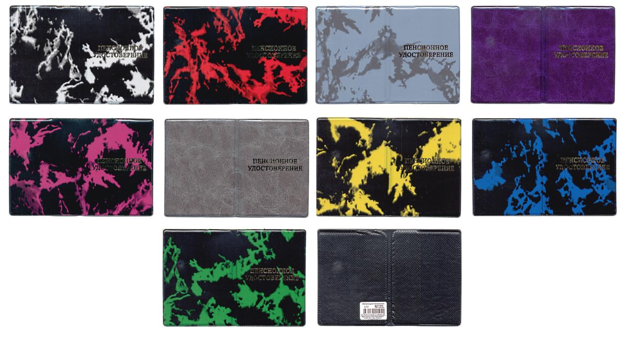 Обложка для пенсионного удостоверения ИМ ПВХ глянец (тиснение золото) Ассорти