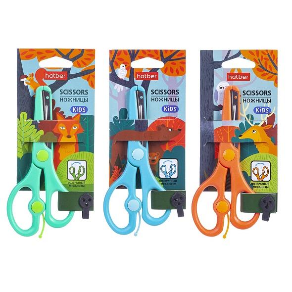 | Ножницы детские 140мм (ХАТБЕР) Лесные безопасные (с ограничителем) (картонная упаковка с европодвесом) Ассорти  Ножницы для детского творчества из качественной нержавеющей стали. Ножницы для детей от 3-х лет, идеальны для обучения малыша обращению с ножницами. Закругленные концы и безопасные накладки на лезвия позволяют избежать случайного пореза кожи, волос или одежды. Возвратный механизм облегчает раскрытие во время использования. Ручки эргономичной формы. длина ножниц: 14 см. Красочная картонная упаковка с европодвесом, которая позволяет оценить характеристики ножниц, не нарушая ее товарного вида. |