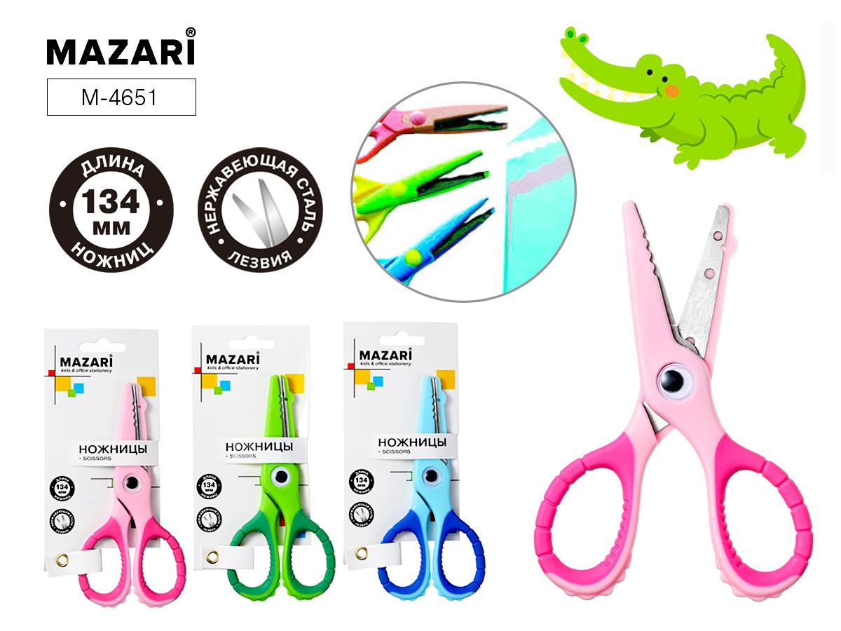 | Ножницы детские 134мм MAZARI Crocodile (картонная упаковка с европодвесом) Ассорти  Ножницы детские CROCODILE, 134 мм, лезвия из нержавеющей стали, пластиковые ручки, ассорти 2 цвета, блистерная упаковка