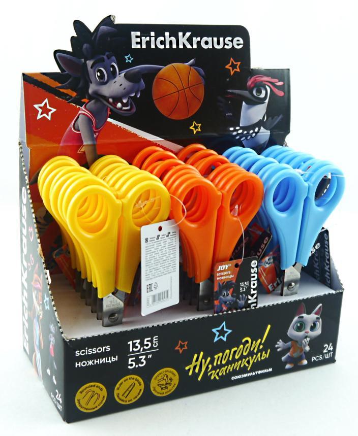| Ножницы детские 135мм ErichKrause Joy Ну, Погоди! Каникулы с линейкой Ассорти  Ножницы с лезвиями из высококачественной нержавеющей стали с безопасными закругленными концами лезвий и линейкой, обеспечивающей точность резки. Не ржавеют. Ручки классической формы изготовлены из ударопрочного пластика. Товар поставляется в нескольких вариантах цвета/дизайна без возможности выбора. |