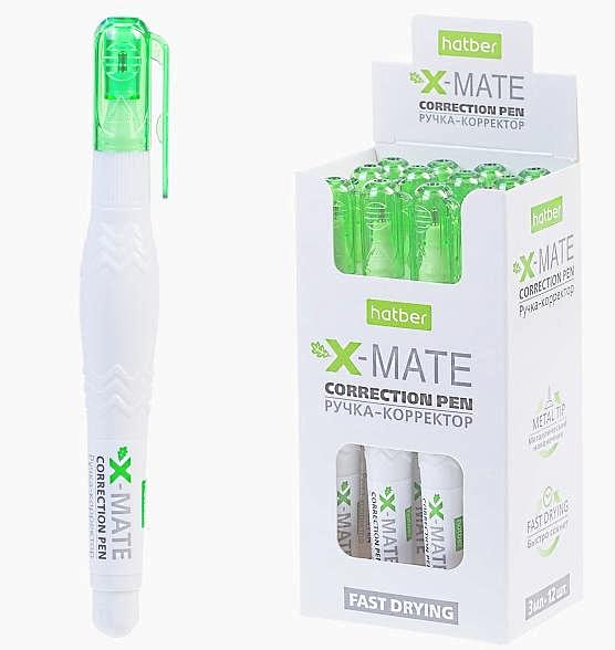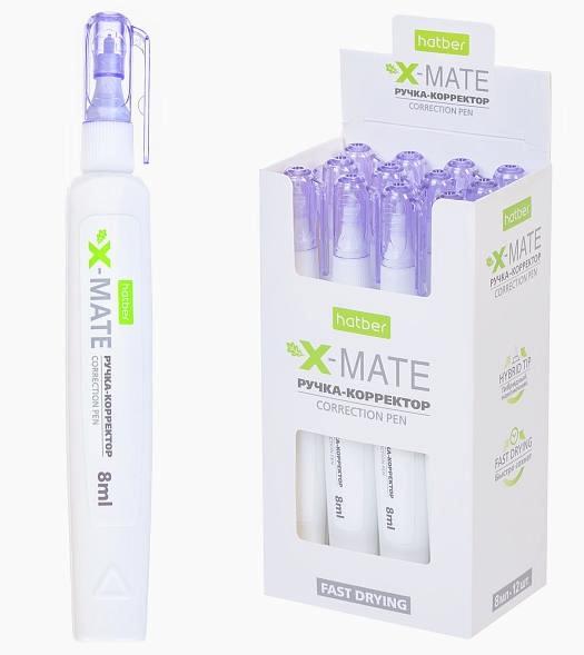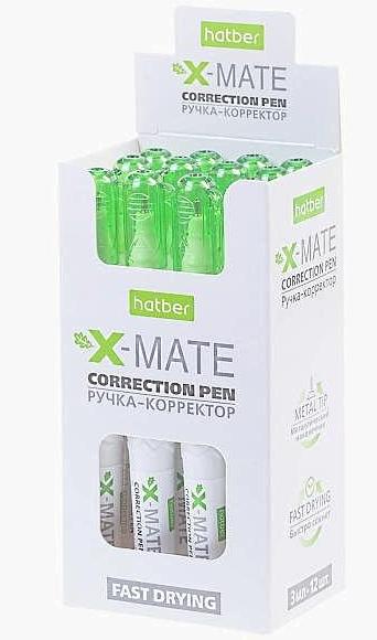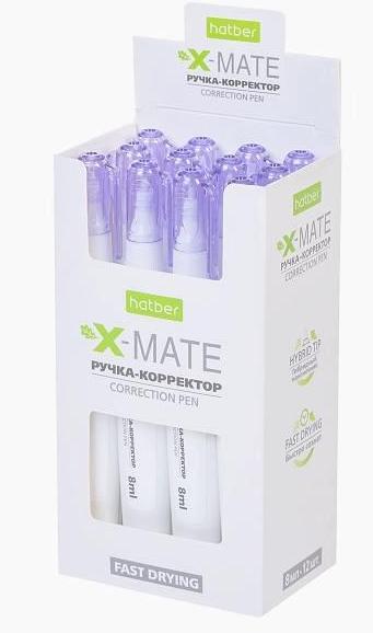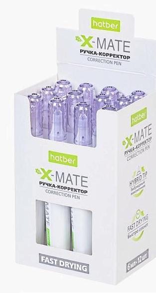 | Корректирующая ручка (карандаш) 6мл (ХАТБЕР) X-Mate (металлический наконечник)  Ручка-корректор Hatber X-Mate с гибридным наконечником подходит для корректировки машинописного или рукописного текста. Гибридный наконечник это надёжность металла в сочетании с лёгким скольжением по бумаге - без царапин, не оставляя металлического следа на бумаге. При небольшом нажатии на корпус наконечник ручки создает неприрывную линию, идеально подходящую для точной корректировки текста. Легко наносится, быстро высыхает после нанесения. Надежный колпачок с клипом предотвращает высыхание.Объем: 6 мл. Упаковка: 12 шт. в картонной дисплей-витрине.