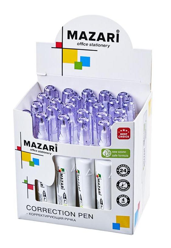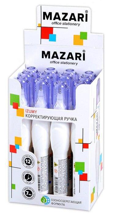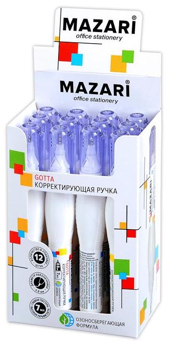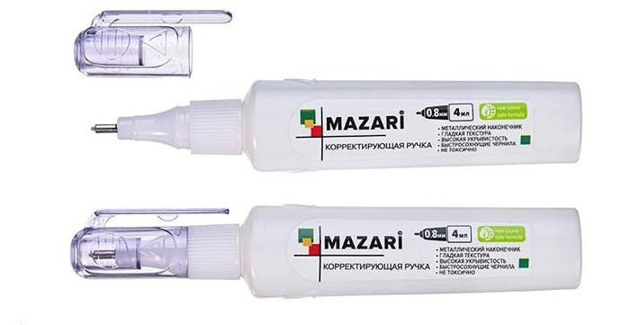 | Корректирующая ручка (карандаш) 5мл MAZARI 0 8мм (металлический наконечник) Ассорти  Корректирующая ручка являяется представителем целого семейства канцелярских принадлежностей. Предназначена для удаления (маскирования) ошибок и помарок в рукописном или печтаном тексте, позволяет легко осуществлять точечные и аккуратные исправления. |