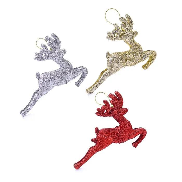 | Новый Год! Украшение набор СНЕГОВИЧОК 3шт пласт Олени цветные 7см (п/упаковка с европодвесом)