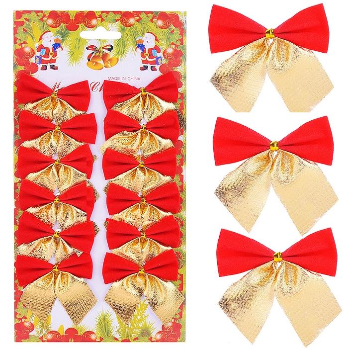 | Новый Год! Украшение набор СНЕГОВИЧОК 12шт Бантики 5см красно-золотые (п/упаковка с европодвесом)  Размер украшений: 5 см. Состав: полимерные и текстильные материалы. |