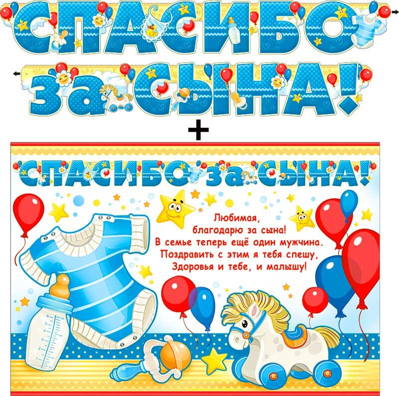 Новорожденным ГИРЛЯНДА картонная ФДА 700-487-T 1, 8м Спасибо За Сына! (+плакат) (с блестками) (п/упаковка)  Размер 1 буквы 16*13 см |