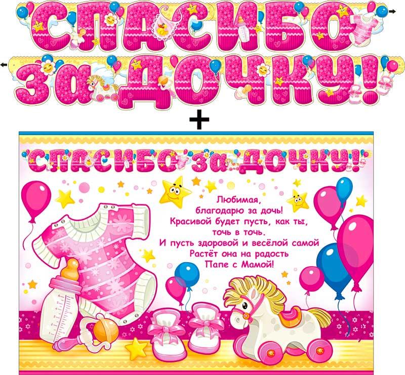 | | Новорожденным ГИРЛЯНДА картонная ФДА 700-488-T 1, 8м Спасибо За Дочку! (+плакат) (с блестками) п/  Размер 1 буквы 16*13 см |