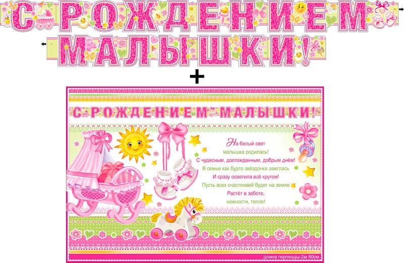 | | Новорожденным ГИРЛЯНДА картонная ФДА 700-527-T 2 8м С Рождением Малышки! (+плакат) (с блестками)  Размер 1 буквы 13,5*11 см |