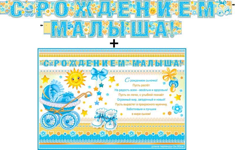 Новорожденным ГИРЛЯНДА картонная ФДА 700-529-T 2, 6м С Рождением Малыша! (+плакат) (с блестками)  Размер 1 буквы 13,5*11 см |