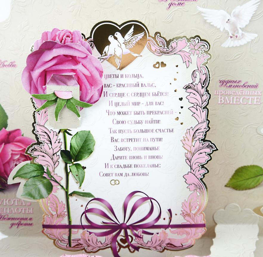 Открытка СВАДЬБА А3 АВП 1КНБ-063 С Днем Свадьбы! сложнотехническая (объемная) (с открыткой-конвертом для денег)  Формат: Сложнотехнические открытки Размер: 351мм х 249мм Наличие текста: Текст Отделка: Фольга Тематика: Свадьба Вырубка: Фигурная |