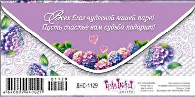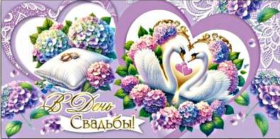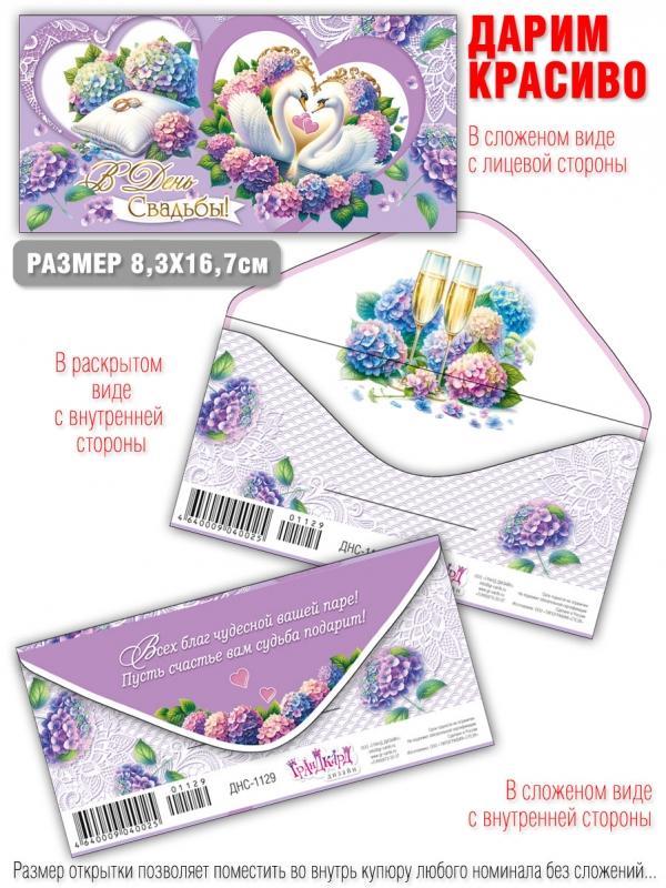Открытка СВАДЬБА для денег (Гранд-Микс) ДНС-1029 В День Свадьбы!  Всех благ чудесной вашей паре! Пусть счастье вам судьба подарит! Конверт для дарения денег. Оборот полноцветный, текст. Без отделки. Машинная склейка.