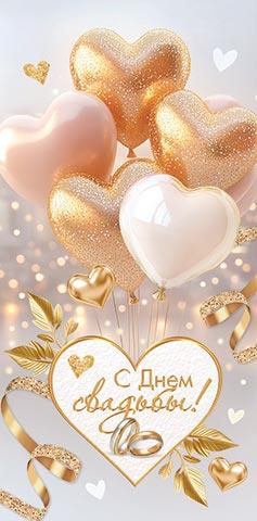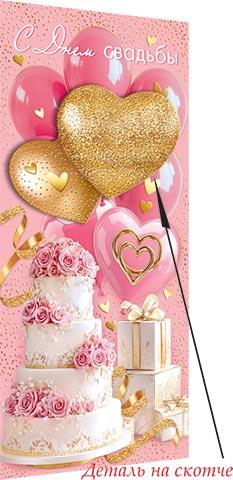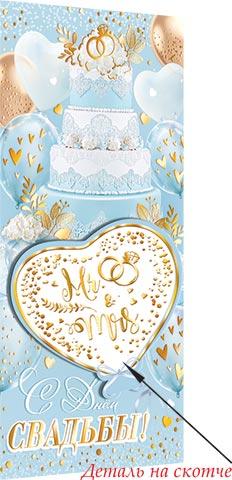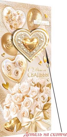 | Открытка СВАДЬБА для денег (МИР ОТКРЫТОК) 4-17-287А С Днем Свадьбы (без текста) (Деталь на скотче) (тиснение золотой фольгой) (п/упаковка)