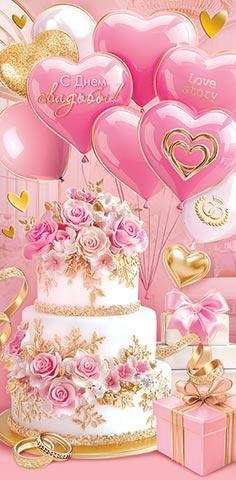 | | Открытка СВАДЬБА для денег (МИР ОТКРЫТОК) 4-17-288А С Днем Свадьбы (без текста) (Деталь на скотче) (тиснение золотой фольгой) (п/упаковка)