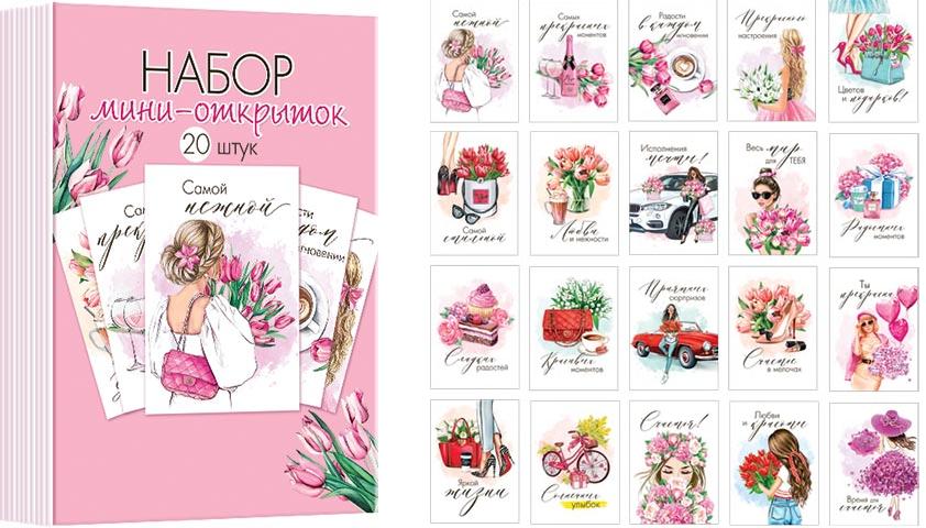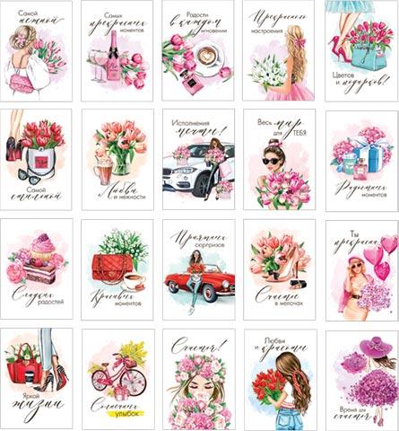 Открытка РОМАНТИКА мини Комплект 20шт (МИР ОТКРЫТОК) 3-78-020А (женская) (п/упаковка)