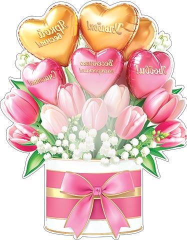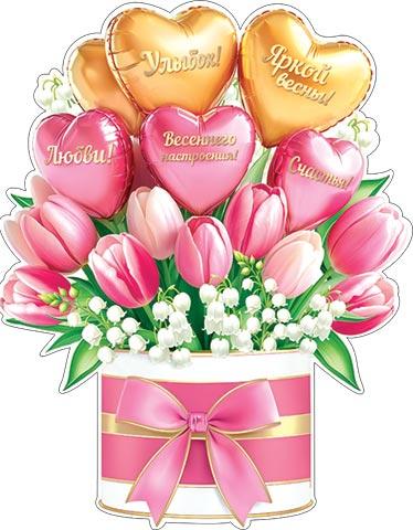 Открытка для оформления РОМАНТИКА А5 (МИР ОТКРЫТОК) 7-65-8064А Тюльпаны на скотче (вырубка)