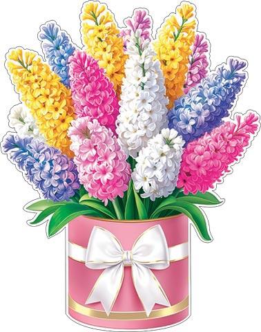 Открытка для оформления РОМАНТИКА А4 (МИР ОТКРЫТОК) 7-64-8036А Букет гиацинтов (вырубка) на скотче