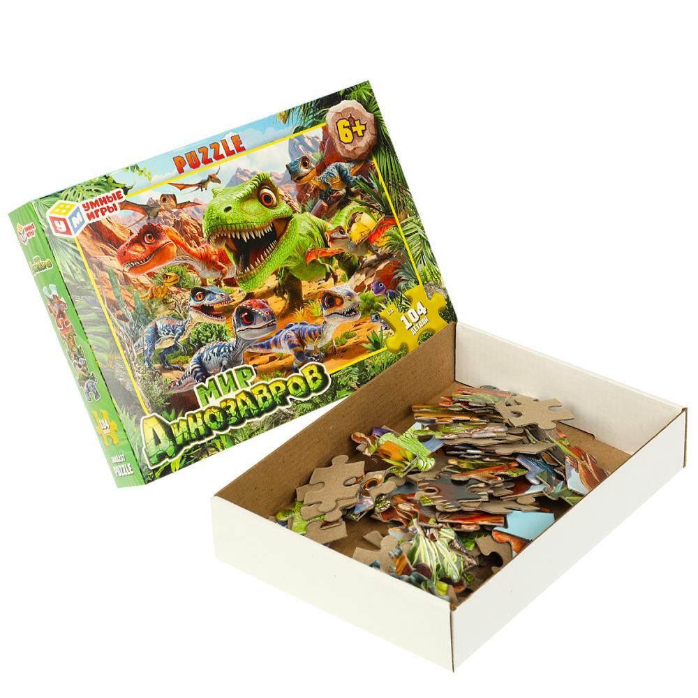 | | Игра настольная ПАЗЛ 104 детали (ХАТБЕР) ECO Динозавр 320*220мм (картонная упаковка)  Пазл - это изображение, разделённое на элементы, которые нужно собрать в целую картинку. Это популярная игра-головоломка для детей и взрослых, в которую одинаково интересно играть в одиночку и в компании. Пазл - это своеобразная игра головоломка, где нужно составить мозаику из целой кучи деталей предмета различной формы. Собирание пазлов развивает и тренирует - мелкую моторику рук,