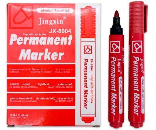 Маркер перманентный (пулевидный пишущий узел) КИТ 2-3мм синий JX-8004  Перманентный маркер предназначен для письма на любой поверхности: бумага, полиэтилен, дерево, стекло, металл, натуральная кожа, ткань, камень, плитка. Чернила могут глубоко проникать сквозь бумагу, поэтому лучше всего рисовать или писать на картоне. Особая нестираемая основа перманентного маркера обеспечивает такие качества, как стойкость к воздействию воды, ультрафиолету, низким и высоким температурам. Благодаря спиртовой основе чернила быстро сохнут и не размазываются. Износостойкий круглый наконечник устойчив к повреждениям и обеспечивает экономный расход чернил. Маркер не перезаправляется. Плотно закрывается колпачком, что предотвращает высыхание наконечника и чернил. Цвет колпачка соответствует цвету чернил. |