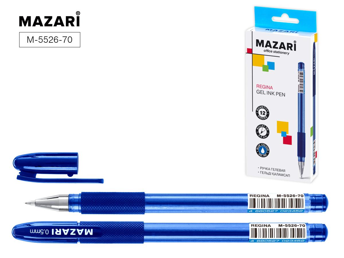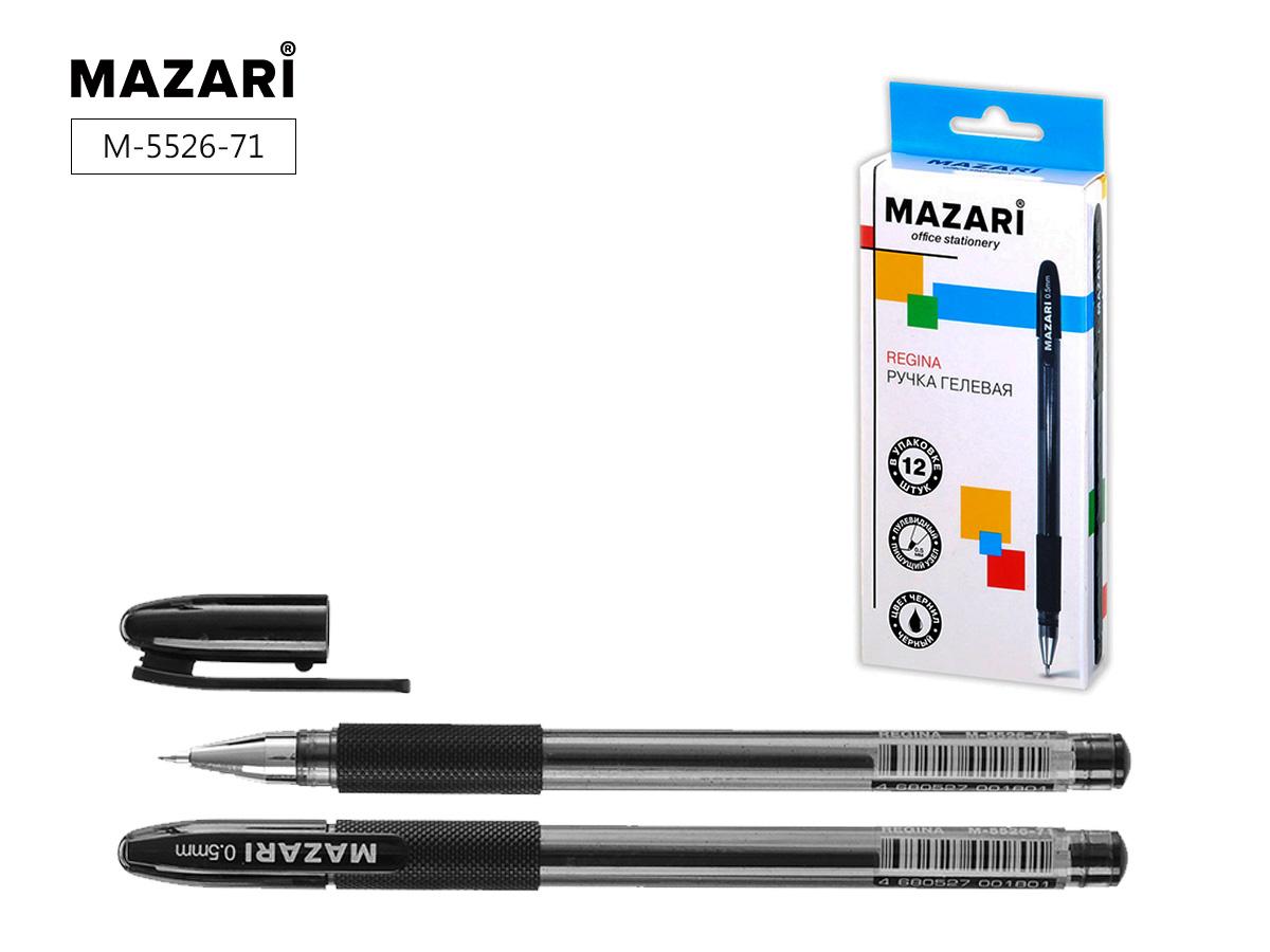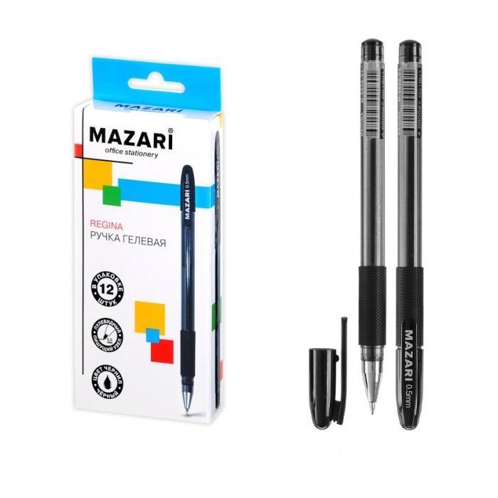 | Ручка гелевая MAZARI Regina 0 5мм (грип-зона из резины) (тонированный чёрный корпус) синяя  Ручка гелевая REGINA, СИНЯЯ, пулевидный пиш. узел 0.5 мм, прозрачный пласт. корпус с мягким резиновым грипом, сменный стержень 131 мм, картонная упаковка |