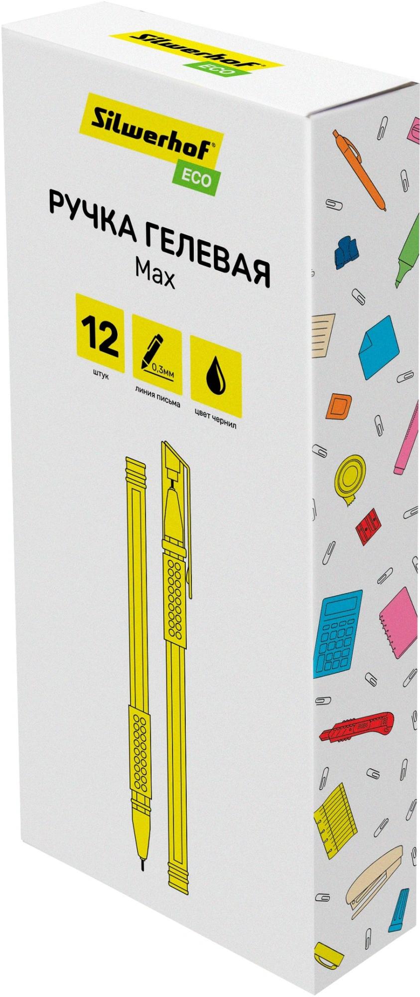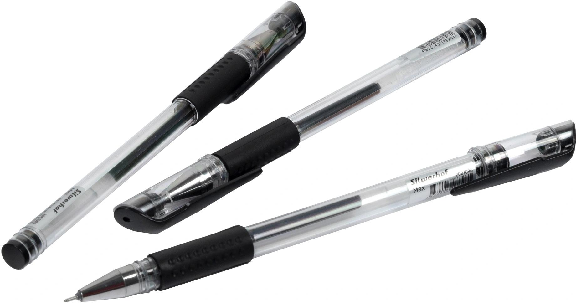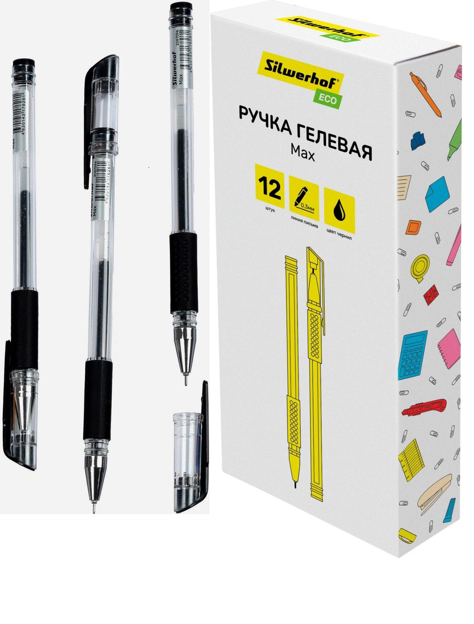 | Ручка гелевая SILWERHOF Eco Max 0 3мм игла (грип-зона из резины) (прозрачный корпус) черная  Гелевая ручка - это надежная ручка, проверенная временем. Ручка идеально подходит для экзаменов ЕГЭ, ведения документооборота, заполнения бланков, заметок в ежедневнике, заполнения личного дневника, рисунков в скетчбуке. Благодаря гелеобразной консистенции чернил и специальной технологии в пишущем узле гелевые ручки обеспечивают мягкое и комфортное письмо. |