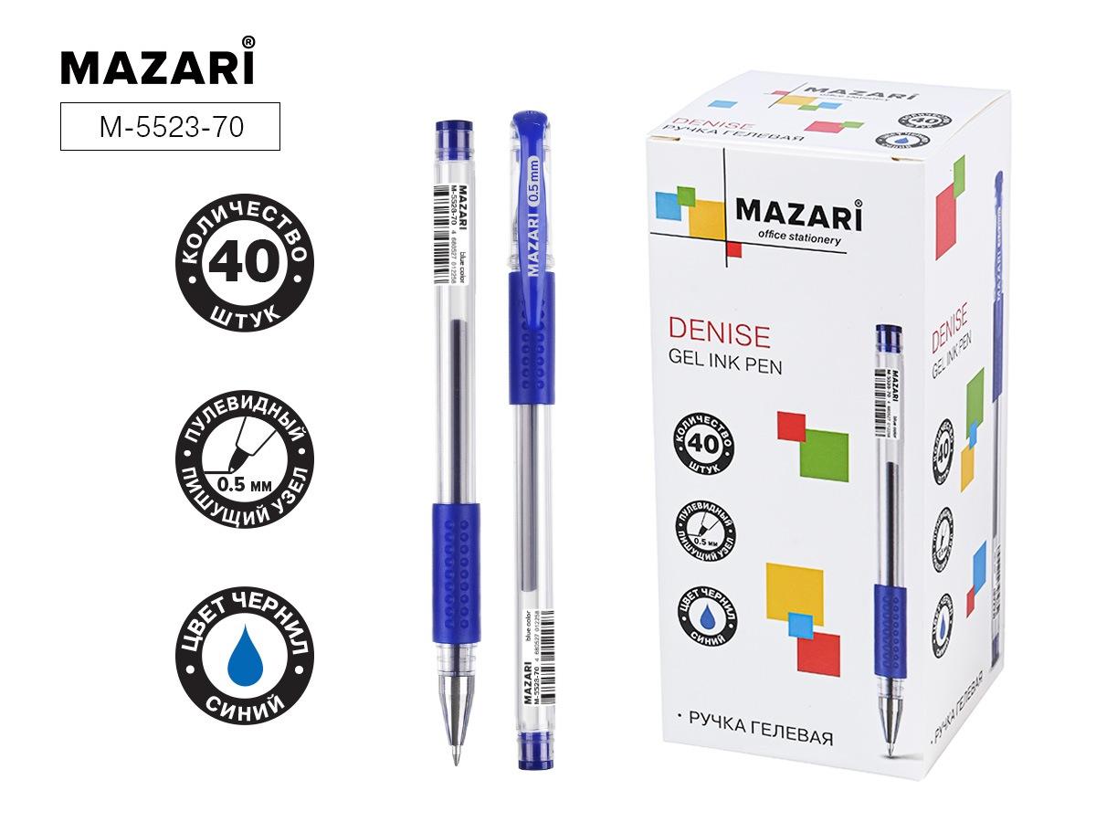 | Ручка гелевая MAZARI Denise 0 5мм (грип-зона из резины) (прозрачный корпус) синяя  Ручка гелевая DENISE, СИНЯЯ, пулевидный пиш.узел 0.5мм, корпус пластиковый прозрачный, с резиновым грипом |