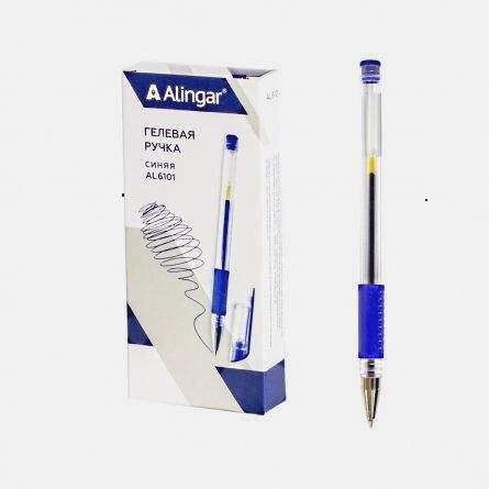 | Ручка гелевая ALINGAR AL6101 0 5мм (грип-зона из резины) (прозрачный корпус) синяя  Ручка гелевая Alingar, 0,5 мм, синяя, AL6101 , металлизированный наконечник, резиновый грип, круглый, прозрачный, пластиковый корпус,12 шт., карт. уп. Гелевая ручка - это надежная ручка, проверенная временем. В гелевой ручке используются чернила, в которых пигмент суспензирован в геле на водной основе. Поскольку чернила густые и непрозрачные, они более отчетливо видны на гладких поверхностях, чем типичные чернила, используемые в шариковых ручках или фломастерах. Благодаря гелеобразной консистенции чернил и специальной технологии в пишущем узле гелевые ручки обеспечивают мягкое и комфортное письмо. Гелевая ручка может писать по любой поверхности и по любой бумаге. Ручка идеально подходит для экзаменов ЕГЭ, ведения документооборота, заполнения бланков, заметок в ежедневнике, заполнения личного дневника, рисунков в скетчбуке.