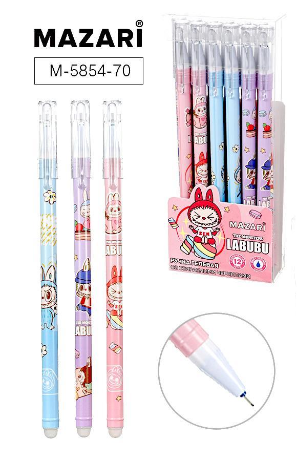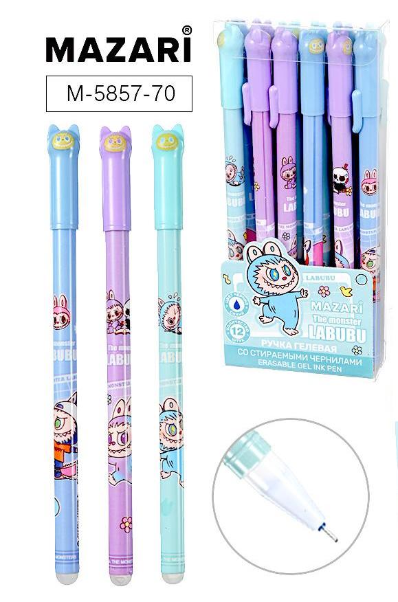 | Ручка "пишет-стирает" с ластиком гелевая MAZARI Зубастик 0 38мм игла (цветной корпус с рисунком) синяя Ассорти  Надписи, сделанные такой ручкой, исчезают под воздействием температуры. Процедуру обессвечивания написанного текста можно проделать любым способом, нагревая лист бумаги выше +60С, например, зажигалкой, феном, любым горячим. Написанное можно восстановить. При температуре наже -18С происходит восстановление пигментного состава чернил до первоначальнгог уровня и написанное проявляется. Данный тип ручек максимально приближен к простому карандашу. Чернила ложатся на бумагу, не впитываясь в её структуру, благодаря чему надписи можно удалить с помощью обыкновенного ластика. Стержень ручки заправлен уникальными обесцвечивающимися термо-чернилами. Необходимо потереть надпись резинкой, расположенной на конце ручки и она исчезнет. Ручка не повреждает структуру бумаги, делая исправления незаметными. |
